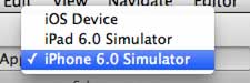 Select iPhone Simulator from the drop-down menu and run.
