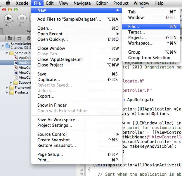 #import #import "SampleProtocol.h" @interface ViewController : UIViewController<SampleProtocolDelegate> { IBOutlet UILabel *myLabel; } @end 10. 完成授权方法,为SampleProtocol创建对象和调用startSampleProcess方法。如下所示,更新ViewController.m文件