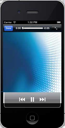 #import "ViewController.h" @interface ViewController () @end @implementation ViewController - (void)viewDidLoad { [super viewDidLoad]; } - (void)didReceiveMemoryWarning { [super didReceiveMemoryWarning]; // Dispose of any resources that can be recreated. } -(IBAction)playAudio:(id)sender{ NSString *path = [[NSBundle mainBundle] pathForResource:@"audioTest" ofType:@"mp3"]; audioPlayer = [[AVAudioPlayer alloc]initWithContentsOfURL: [NSURL fileURLWithPath:path] error:NULL]; [audioPlayer play]; } -(IBAction)playVideo:(id)sender{ NSString *path = [[NSBundle mainBundle]pathForResource: @"videoTest" ofType:@"mov"]; moviePlayer = [[MPMoviePlayerViewController alloc]initWithContentURL:[NSURL fileURLWithPath:path]]; [self presentModalViewController:moviePlayer animated:NO]; } @end